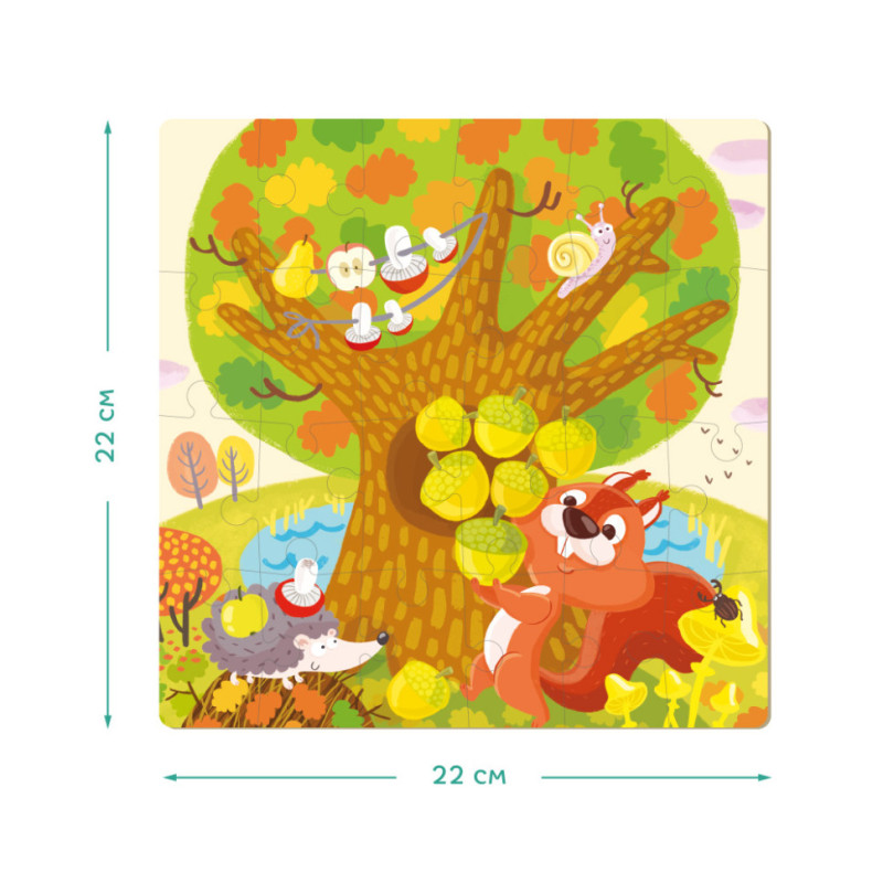 Збираючи пазли 4 в 1 Пори року, малюк в ігровій формі навчиться визначати зиму, весну, літо і осінь за характерними ознаками.
