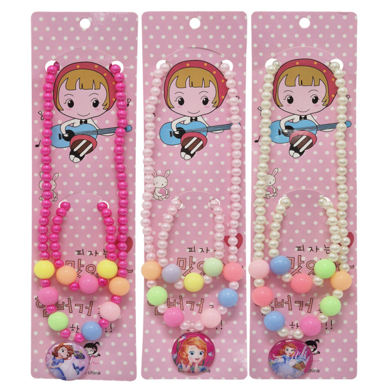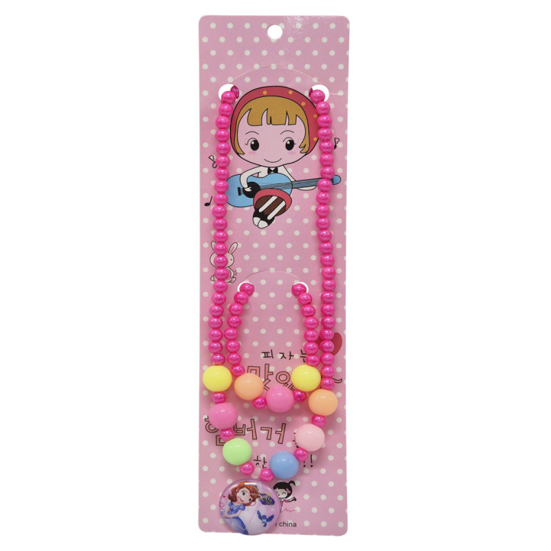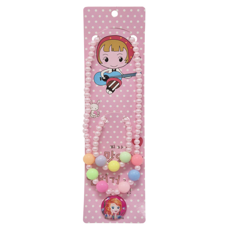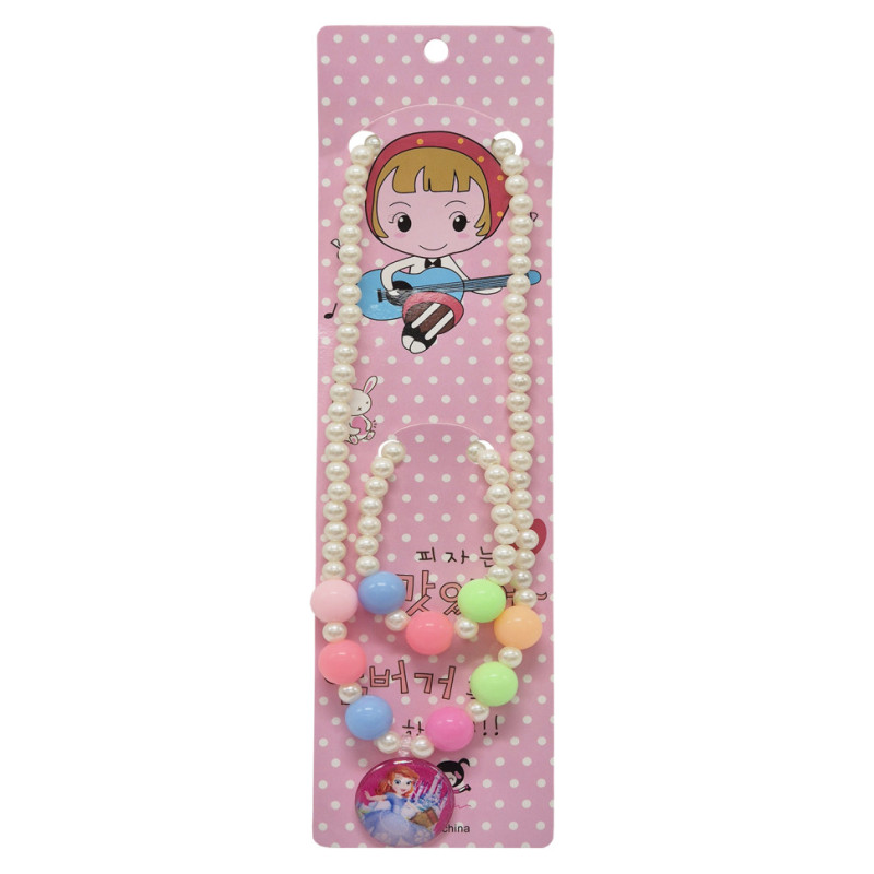 Яскравий дитячий набір прикрас — чудовий аксесуар для маленьких принцес. У комплект входять браслет та намисто із різнокольорових намистин, доповнений кулоном із зображенням принцеси, що додає образу казковості та ніжності.