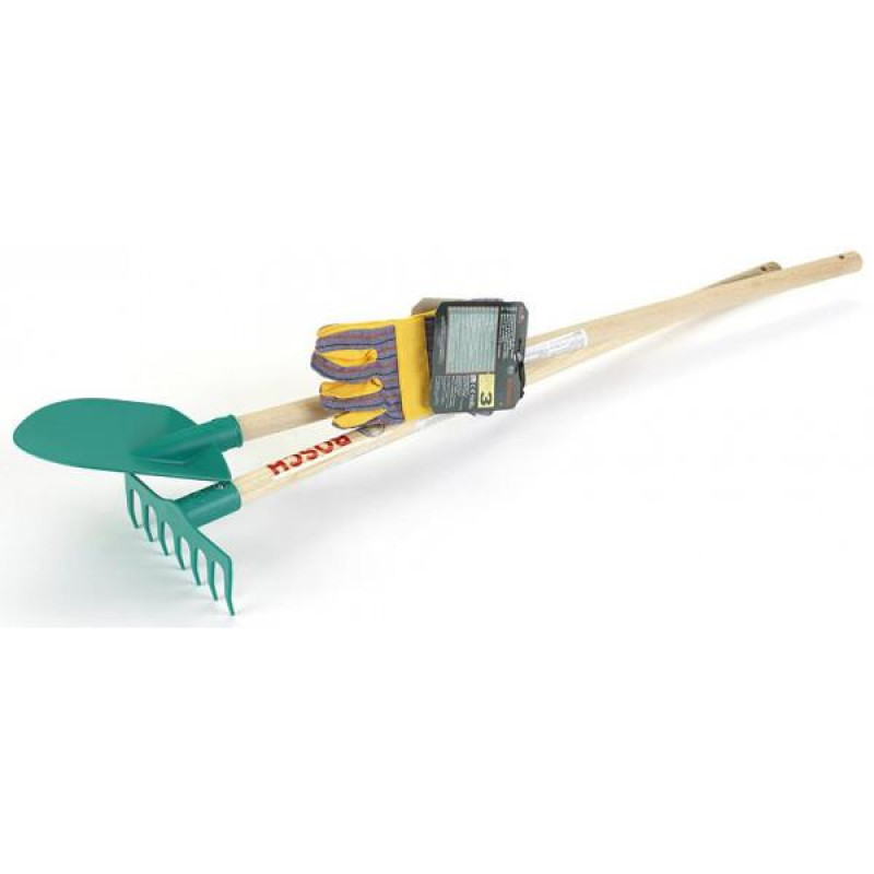 У дитячий набір садівника Bosch Mini Klein входить лопатка, граблі та захисні рукавички. Призначається для гри просто неба дітей віком від 3 років.Опис дитячого інвентарю для саду Bosch Mini Klein:Малюк з цікавістю вивчає навколишній світ, повторює дії за дорослими. У теплу пору року на дачі або присадибній ділянці з набором садівника дитина допоможе мамі обробити землю, посадити розсаду або квіточки.Граючи, дитина не тільки весело та цікаво проводить час, у неї формується працьовитість та любов до рослин, розвивається відповідальність, дрібна моторика рук.Виготовлені граблі та лопатка із міцного, гіпоалергенного пластику. Держаки з натурального дерева. Захисні рукавички із бавовни. Матеріали виготовлення якісні та довговічні, набір буде улюбленою іграшкою для кількох поколінь родини.Діаметр утримувачів 2.3 см, довжина 85 см. Для зберігання передбачені наскрізні отвори для підвішування.