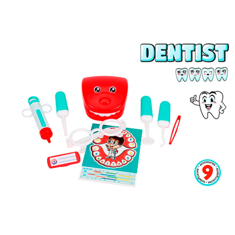 Іграшка «Набір стоматолога ТехноК» познайомить малюків з новою професією — лікаря стоматолога. У наборі є всі необхідні інструменти, щоб провести огляд та пролікувати зубки улюбленим іграшкам: бур, дзеркало, зонд, шприц та пінцет. А одягнувши окуляри та бейджик, малюк відчує себе справжнім стоматологом. Модель щелепи допоможе ближче роздивитися зубки, а за схемою «нумерація зубів» разом з матусею слідкувати у якому порядку виростають у діток зубки.