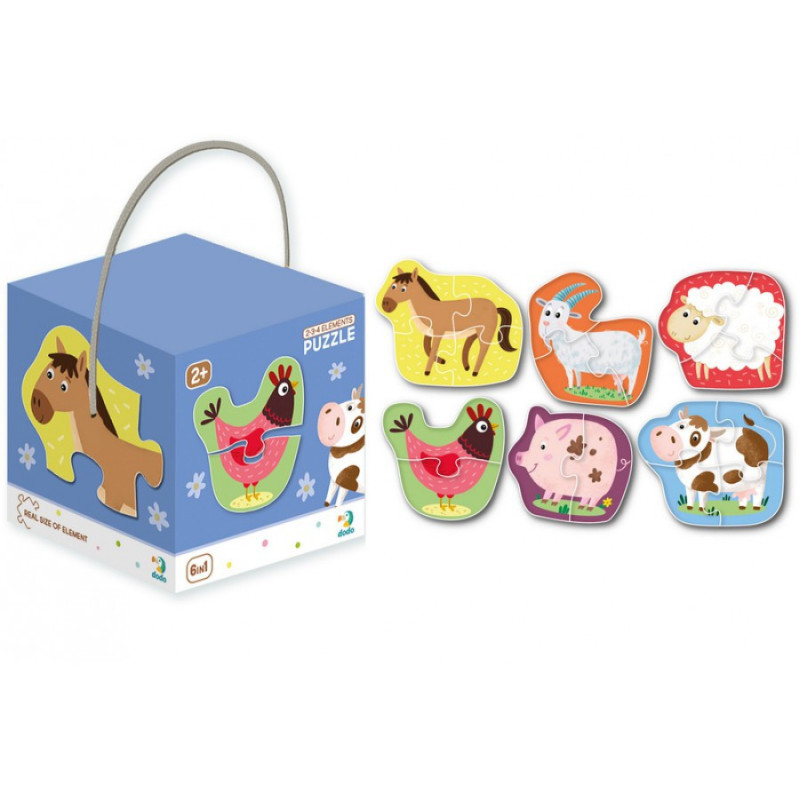 Пазли 6 в 1 Домашні тварини (2, 3, 4 елементи), Dodo В грі 6 пазлів, кожен з яких складається з двох, трьох або чотирьох елементів.