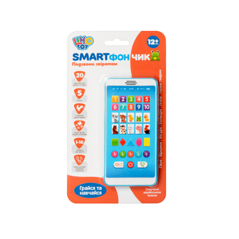 Телефон M 3675 - функціональна, сучасна іграшка для дитини старше 12-ти місяців з безліччю корисних режимів, музичним супроводом і реалістичним, деталізованим дизайном. Дитячий іграшковий смартфончик не залишить байдужою Вашу дитину, який мріє про власний телефоні, як у мами з татом. Тепер малюк зможе не тільки самостійно «дзвонити» по важливих справ, а й розвивати комунікативні навички. Іграшка, озвучена українською мовою, включає в себе 20 віршиків про цифри і звіряток, п'ять пісеньок, справжні звуки тварин, назви фігур і велика кількість інших необхідних для малюка знань. Компактний, зручний у використанні смартфончик допоможе відволікти дитину в дорозі, додасть його дозвіллю різноманітності. Міцний корпус виготовлений з нетоксичного, зносостійкого пластика. Використовуючи цю чудову модель, придумайте для свого непосиди нові навчальні ігри, розучите нові вірші та пісні.