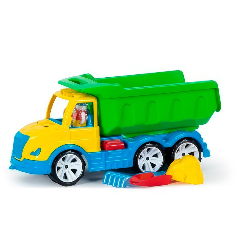 Самоскид Mati лопата, грабельки, ремінь Бамсик Товари орієнтовані на дітей від трьох років і є чудовим доповненням розвитку та дозвілля малюка, а саме: дитячі машинки, вантажівки, машинки спец. техніки, набори будівельних конструкторів, пірамідки, кубики, пісочні набори, набори дитячого посуду, кеглі для боулінгу та багато іншого для загального розвитку дітей.