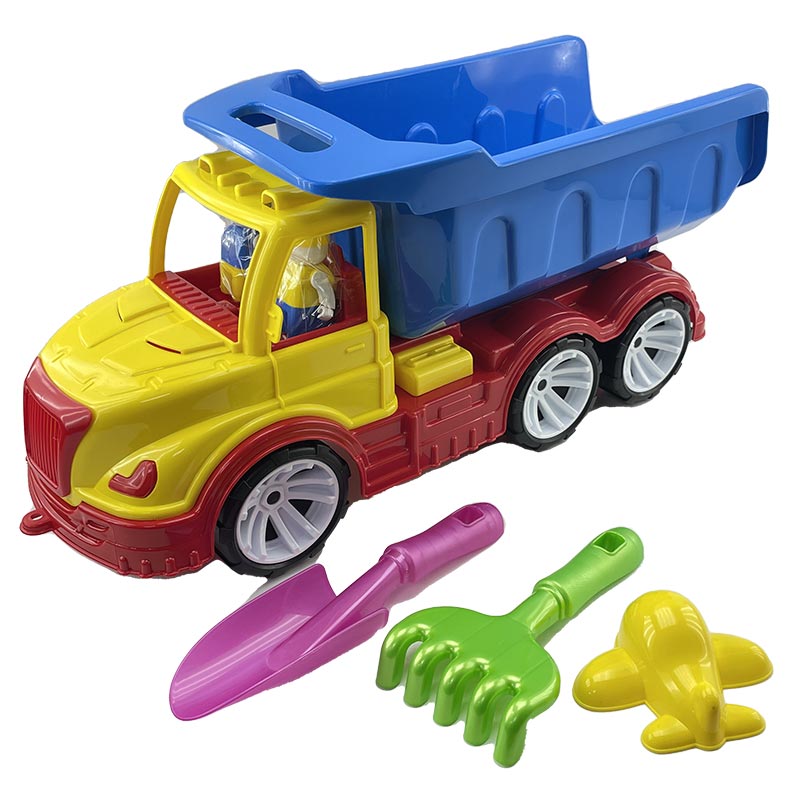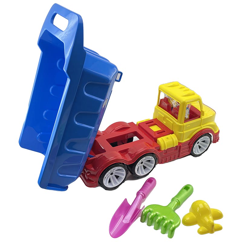 Самоскид Mati лопата, грабельки, ремінь Бамсик Товари орієнтовані на дітей від трьох років і є чудовим доповненням розвитку та дозвілля малюка, а саме: дитячі машинки, вантажівки, машинки спец. техніки, набори будівельних конструкторів, пірамідки, кубики, пісочні набори, набори дитячого посуду, кеглі для боулінгу та багато іншого для загального розвитку дітей.