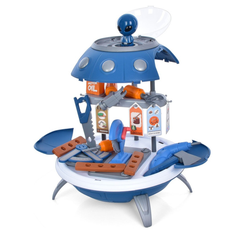 Подаруйте маленькому майстру унікальну ігрову зону! Дитячий стіл з інструментами 25767 виконаний в оригінальній формі космічного корабля (UFO), що додає грі фантастичний елемент. Цей набір дозволить дитині з головою поринути у світ будівництва та ремонту.