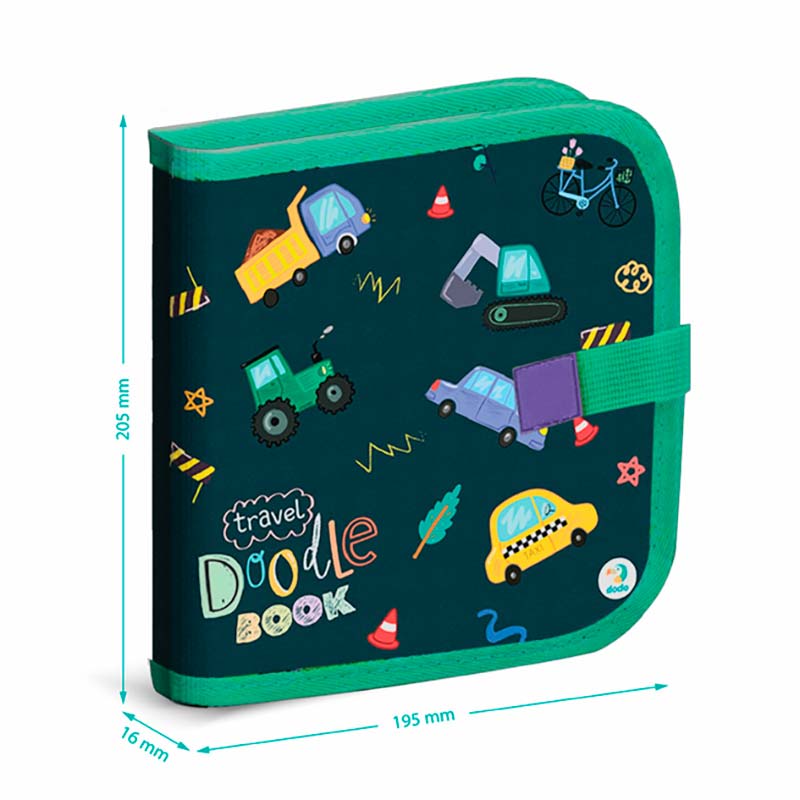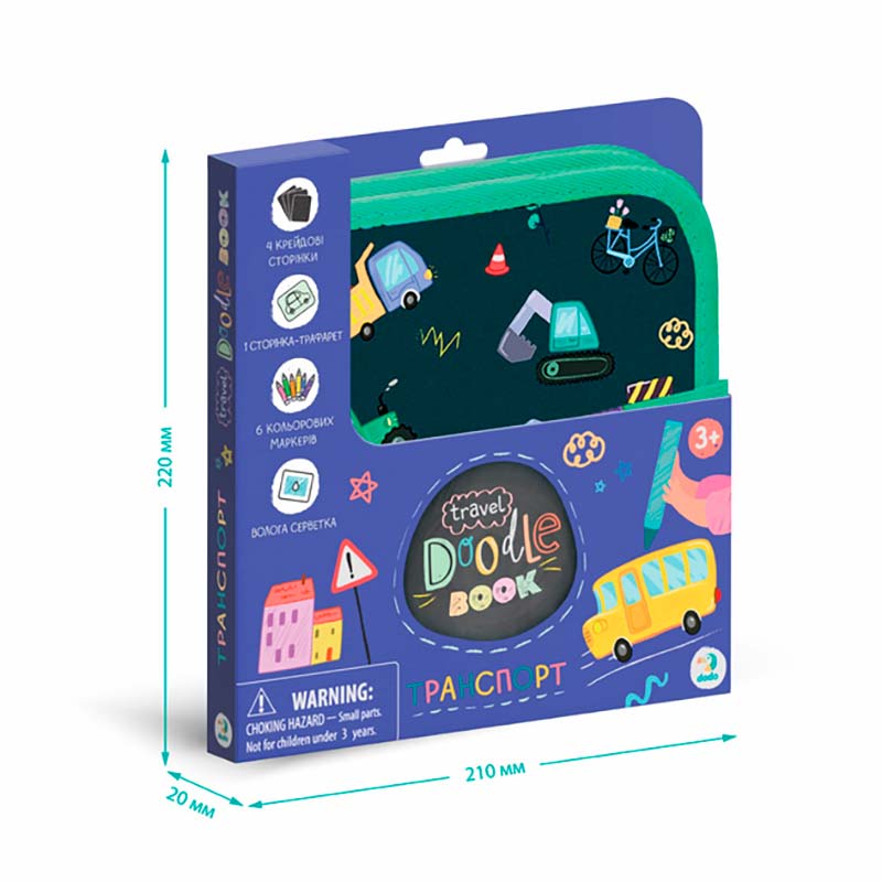 Пізнавальний і компактний набір для творчості, створений спеціально для поїздок і занять поза домом. Книга містить готові сюжети та набір трафаретів, які допомагають дитині швидко намалювати різні види транспорту та додати власні деталі.