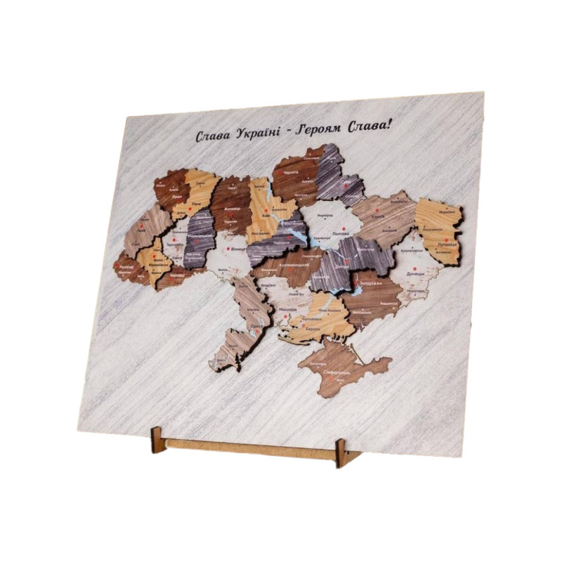 Двошарова дерев’яна "Карта України" Арт-00351 на підставці