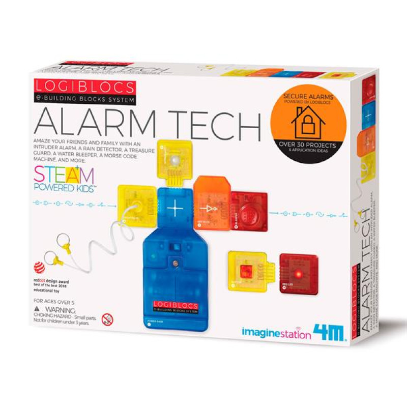 Електронний конструктор 4M Прилади оповіщення із серії Logiblocs заснований на датчиках світла та торкання, з якими можна грати у пошуках скарбів та створювати різні види сигналізації. Усередині комплекту 7 блоків, що з'єднуються між собою, включаючи блок живлення, кнопку, датчик світла, схему, логічний вентиль «НЕ», червоний світлодіод, електронний зумер і детальний буклет з інструкціями. Що можна зробити із цього? Більше 30 проєктів та програм, таких як охоронна сигналізація, детектор дощу, апарат Морзе та багато інших. З цим електронним конструктором можна дізнатися багато нового зі світу фізики. Кожен пластиковий модуль з електронікою всередині має окрему функцію, і всі вони можуть працювати разом. З'єднуючи модулі в різних комбінаціях, діти з цікавістю створюватимуть корисні системи керування та гаджети. Наприклад, можна обладнати кімнату дверною сигналізацією або автоматично записувати та відтворювати повідомлення. Усі блоки набору працюють у поєднанні один з одним. Поєднайте цей комплект з іншими із серії Logiblocs, щоб розширити межі своїх експериментів. Конструктор 4M Прилади оповіщення чудово підходить для занять у навчальних закладах, центрах розвитку, у тому числі за методикою STEAM. Набори із серії Logiblocs допомагають зрозуміти область автоматики та електронних систем навколо нас. Від світлофорів до космічних станцій, від автомобілів до комп'ютерів - все у сучасному світі високих технологій управляється так само, як у конструкторі Logiblocs. Діти краще розуміють електроніку з цими наборами і, пройшовши покрокові інструкції, бачать результати у вигляді готових пристроїв. Logiblocs - це захоплюючі електронні конструктори, які допомагають зрозуміти світ IT у веселій та легкій формі.