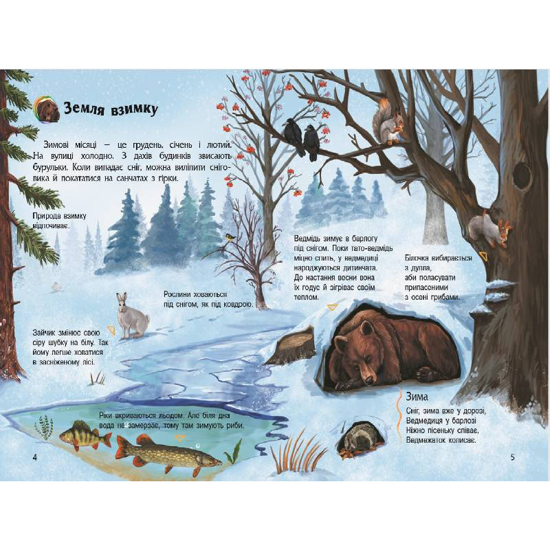 Цікава та яскрава енциклопедія для малюків від 2 років, що знайомить із дивовижним світом нашої планети. На 32 сторінках діти дізнаються про природу, клімат, океани, гори, тварин і багато іншого.