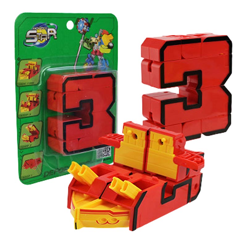 Кумедна та функціональна іграшка з пластику, яка легко перетворюється з машинки в стилізовану цифру. Динамічний дизайн, насичені кольори та плавні форми роблять її привабливою для гри та колекціонування.