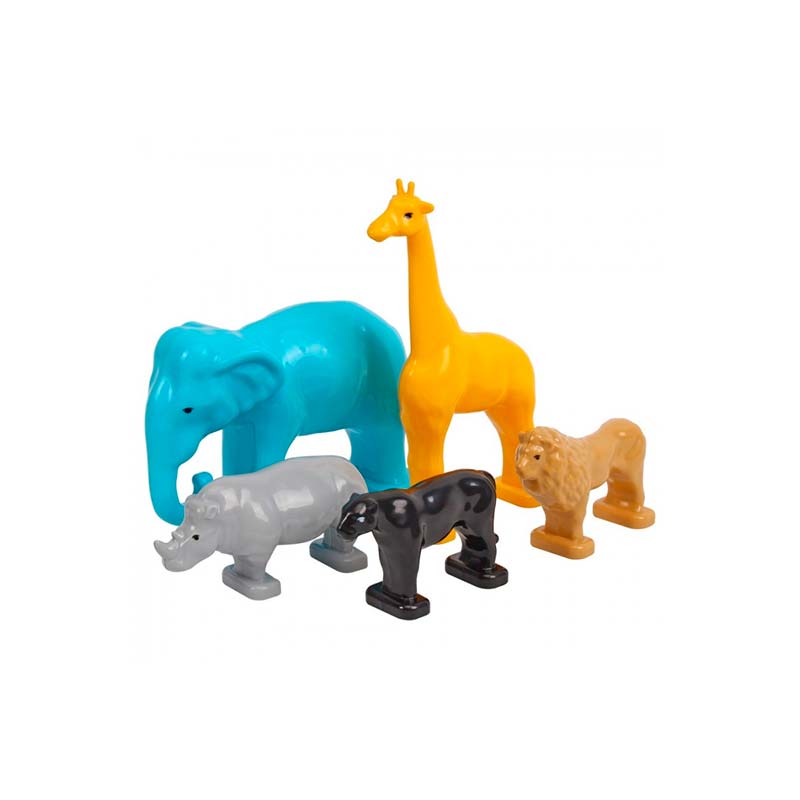 Дикі тварини – жирафа, слон, лев, носоріг та пантера – перенесуть дитину у світ джунглів і саван, де можна створювати захопливі пригоди та сценарії.
