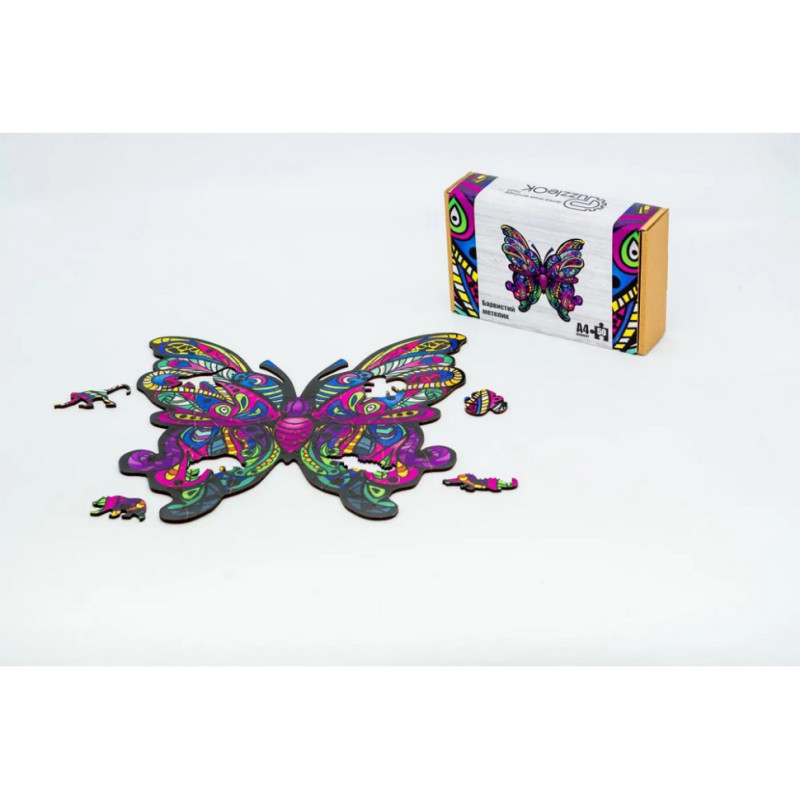 Фігурний деревяний пазл A4 Барвистий Метелик PuzA4-01723 60 деталей