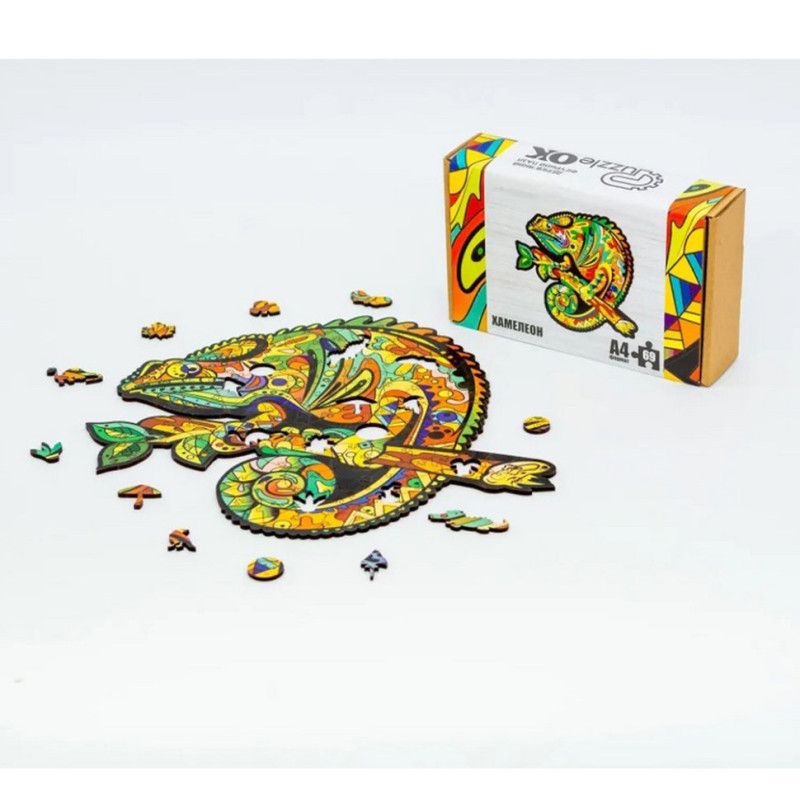 Пазл "Хамелеон" постачається в зручній картонній упаковці, що робить його чудовим варіантом як для власного задоволення, так і для оригінального подарунка. Складання цього пазла сприяє розвитку логічного мислення, уважності, дрібної моторики та уяви. Відкрийте для себе світ яскравих кольорів та хитромудрих форм з цим чудовим дерев'яним пазлом!