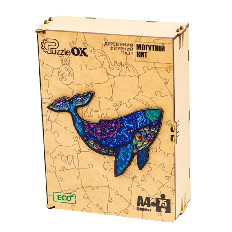 Фігурний деревяний пазл A4 "Могутній Кит" PuzA4-04126 75 деталей