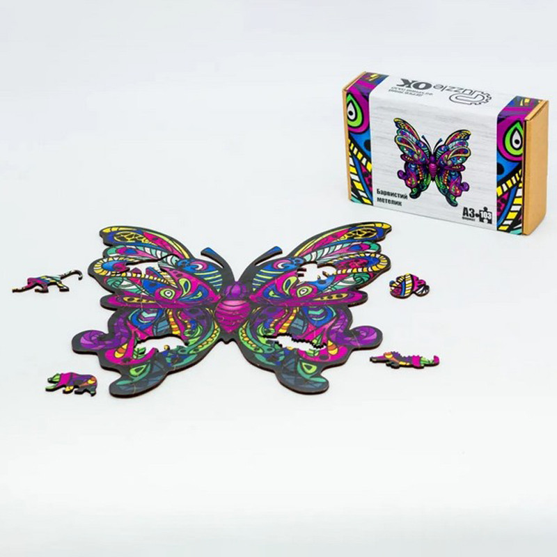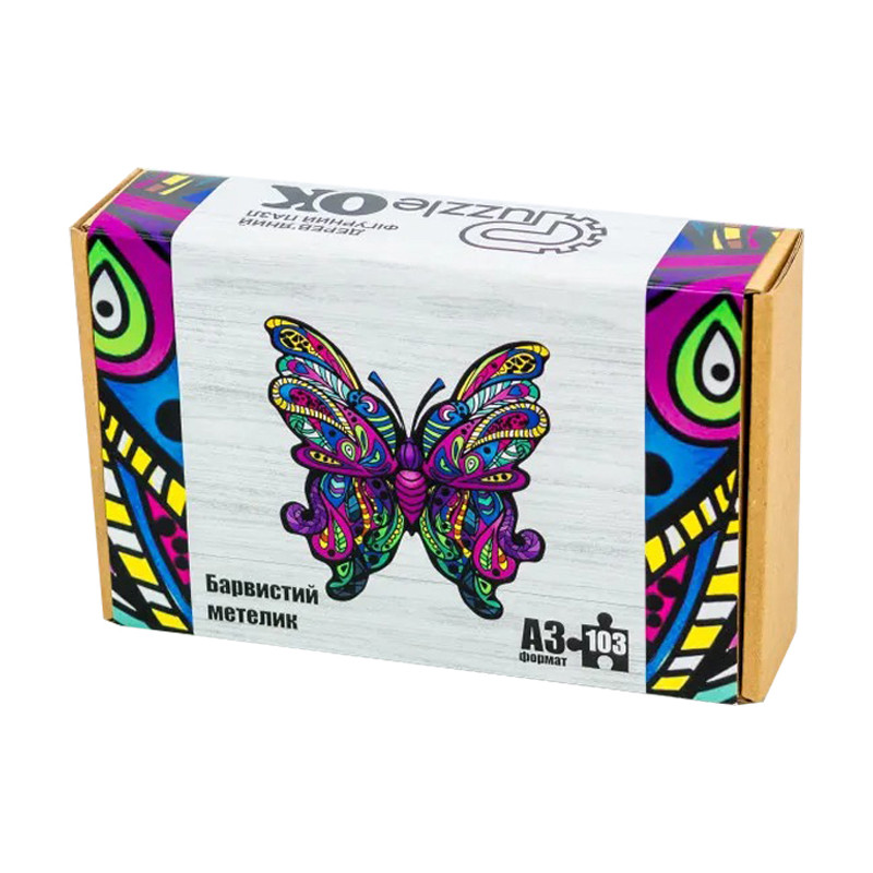 Фігурний деревяний пазл "Барвистий метелик" PuzA3-01235 103 деталі