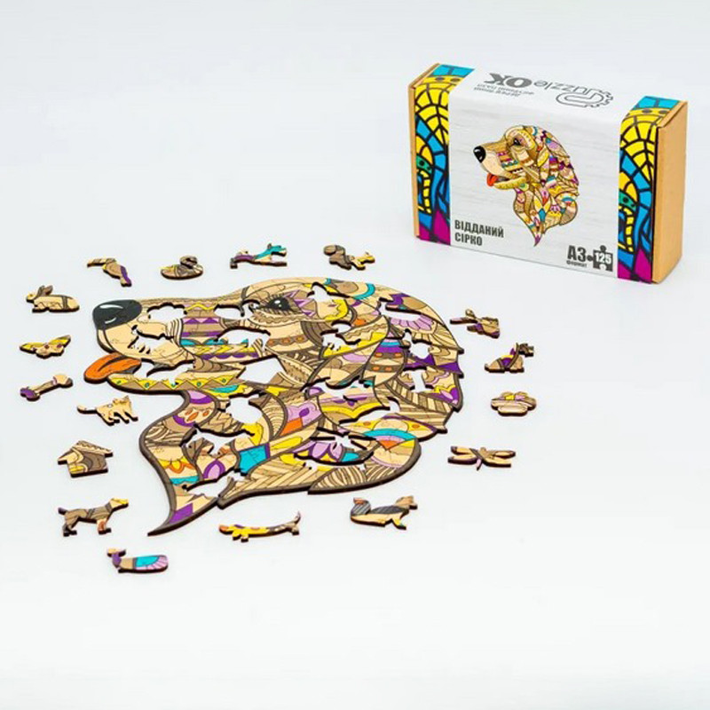 Фігурний деревяний пазл "Відданий Сірко" PuzA3-03519 125 деталей