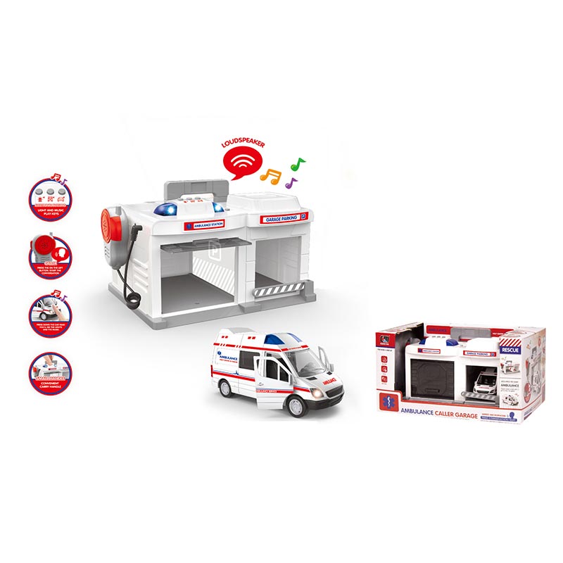Гараж з металевою машинкою швидка допомога зі світлом і звуком CLM-557