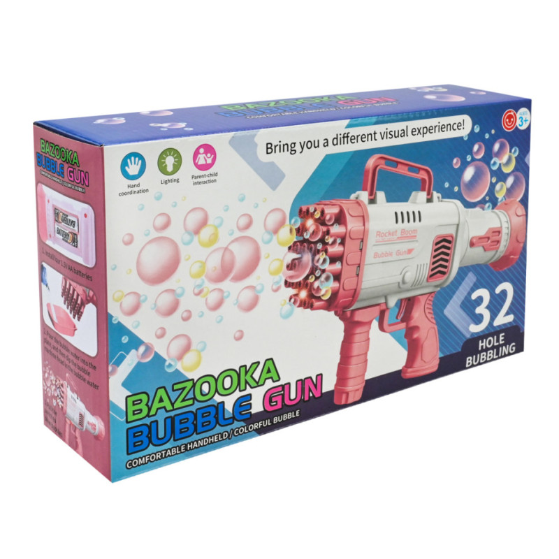 - Завдяки великій кількості отворів (32 отвори) у бластера одночасно видувається багато мильних бульбашок.
