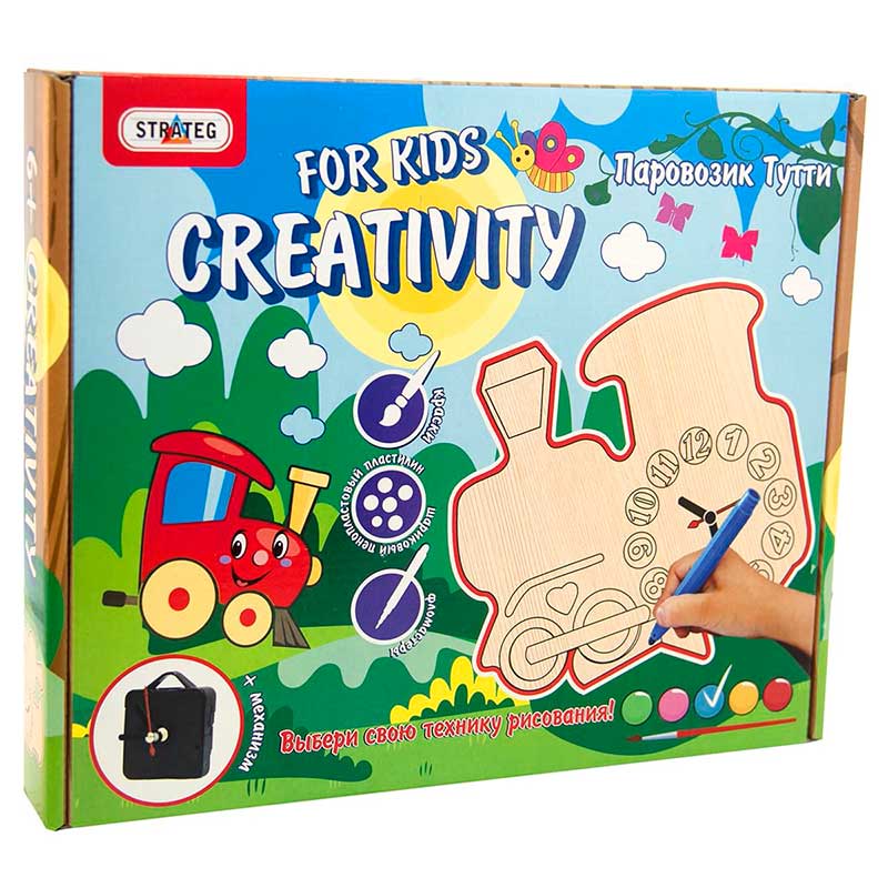 Годинник з фанери 6107 "Паровозик Тутті" в кор-ці 305см-25см-45см 6107