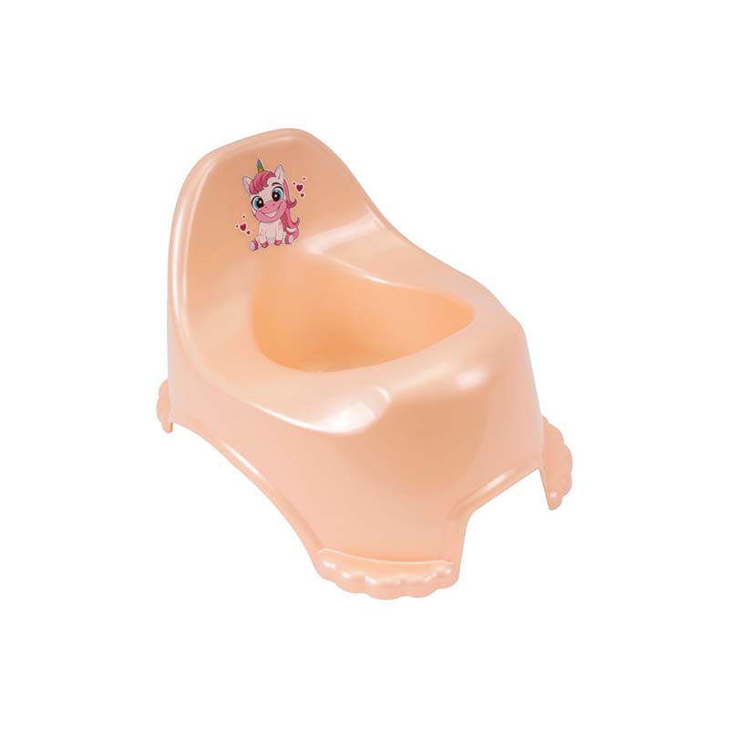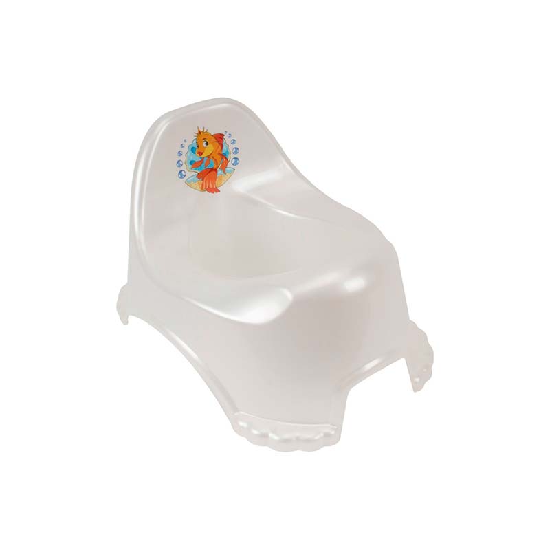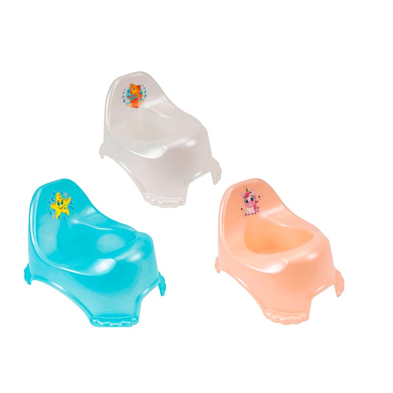 Горщик має округлі анатомічні форми, зручні для малюків. Приємні кольори перламутрових відтінків сподобаються діткам та батькам. А щоб викликати більший інтерес діток до горщиків – милі зображення звіряток на наліпках.