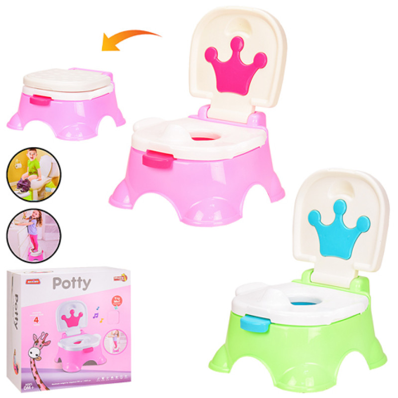 Горщик музичний 2 кольори - універсальний і практичний горщик зробить процес звикання до горщика легким і приємним, за допомогою музичного супроводу. Цей музичний горщик має дуже ергономічну обтічну форму, тому малюкові буде затишно на ньому сидіти, а веселі звуки розважать дитину. Коли дитина підросте, знімне сидіння горщика можна помістити на дорослий унітаз, при цьому чарівні мелодії будуть продовжувати грати. Резервуар легко виймається, що полегшує миття горщика. Горщик працює від батарейок. Товар представлений у двох кольорах. Прекрасний подарунок для Вашої дитини!