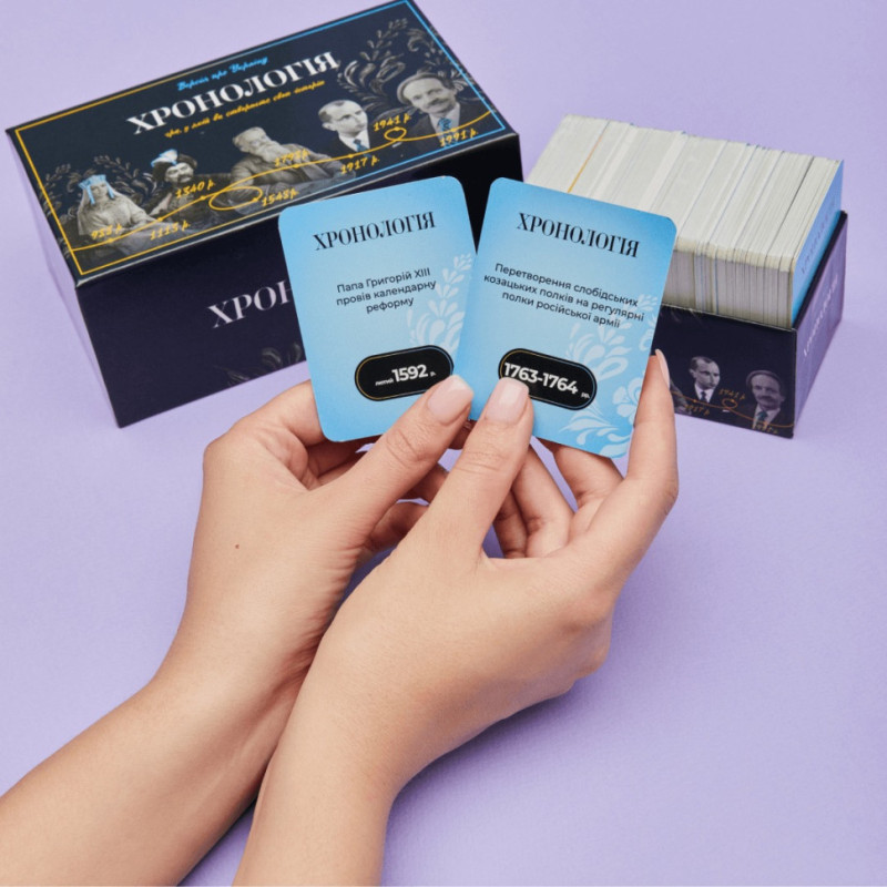 Запропонуйте своїм близьким провести захоплюючий сімейний вечір, де ви зможете разом грати в цю гру і дізнаватися про важливі історичні події, що вплинули на нашу країну. “Хронологія” стане прекрасним доповненням до вашого вечора і дасть змогу отримати нові знання та враження.