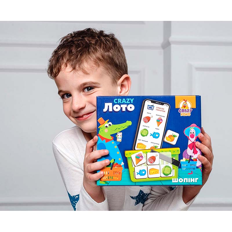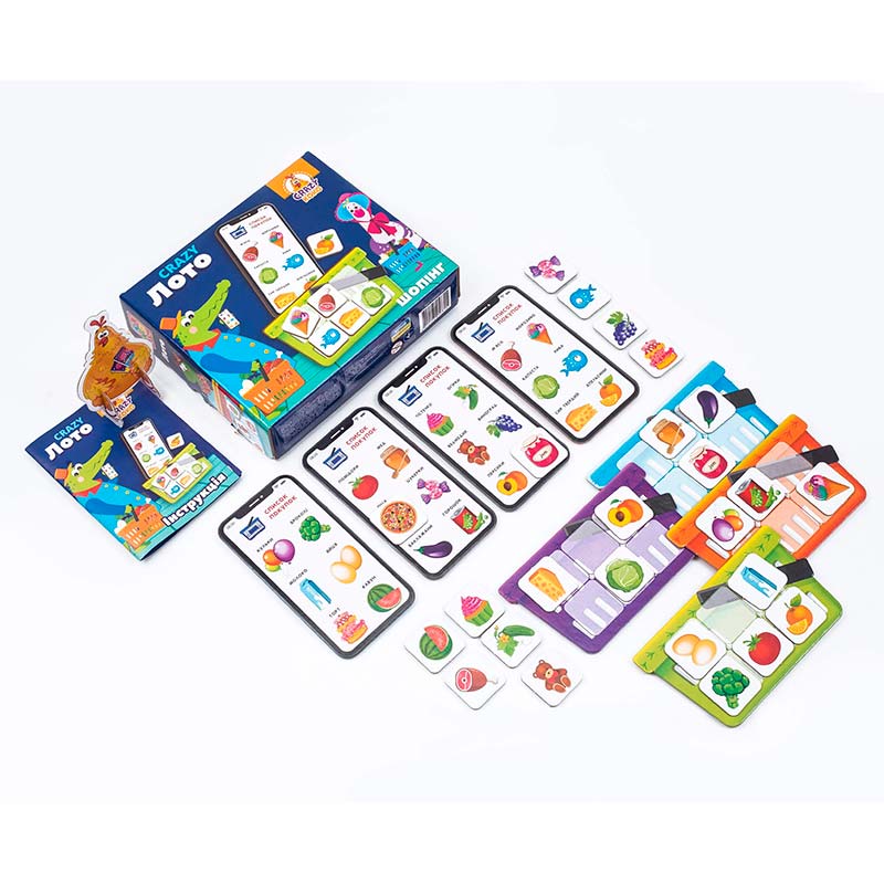 Дзінь-дзінь! Зазирни до смартфону. Там на тебе вже чекає список необхідних покупок. Збирай компанію друзів, та швидше відправляйтеся на захопливий шопінг! Мета: заповнити свій кошик продуктами швидше за інших. Як грати? Розподіліть списки покупок та кошики між усіма гравцями. Картки з продуктами розкладіть на столі зворотною стороною догори. Перегортайте їх по черзі. Якщо на картці зображено продукт, який вам потрібен, кладіть його до себе у кошик. Комплектація: 4 списки покупок, 4 кошики, 28 карток з продуктами, інструкція. Кількість гравців: 2-4. Вік: 5-10 років.