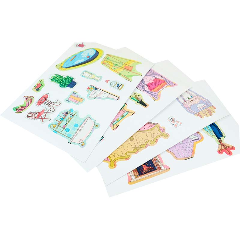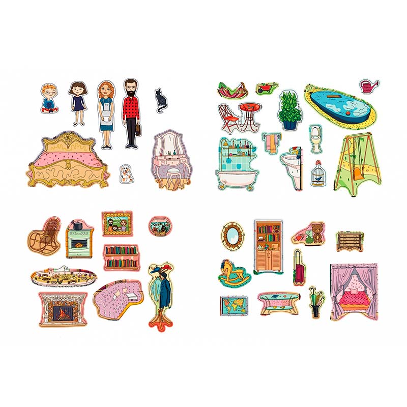 - Багаторазові наклейки — легко знімаються й прикріплюються, дозволяють створювати нескінченні варіації сцен.