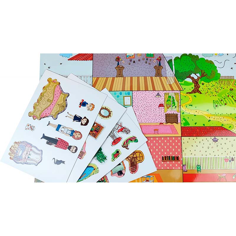 Барвиста та інтерактивна гра, що перетворює звичайну гру в захопливу навчальну пригоду. Ляльковий будиночок стимулює уяву й розвиває соціальні навички через рольові ігри, а багаторазові наклейки дозволяють створювати нові інтер'єри знову й знову.