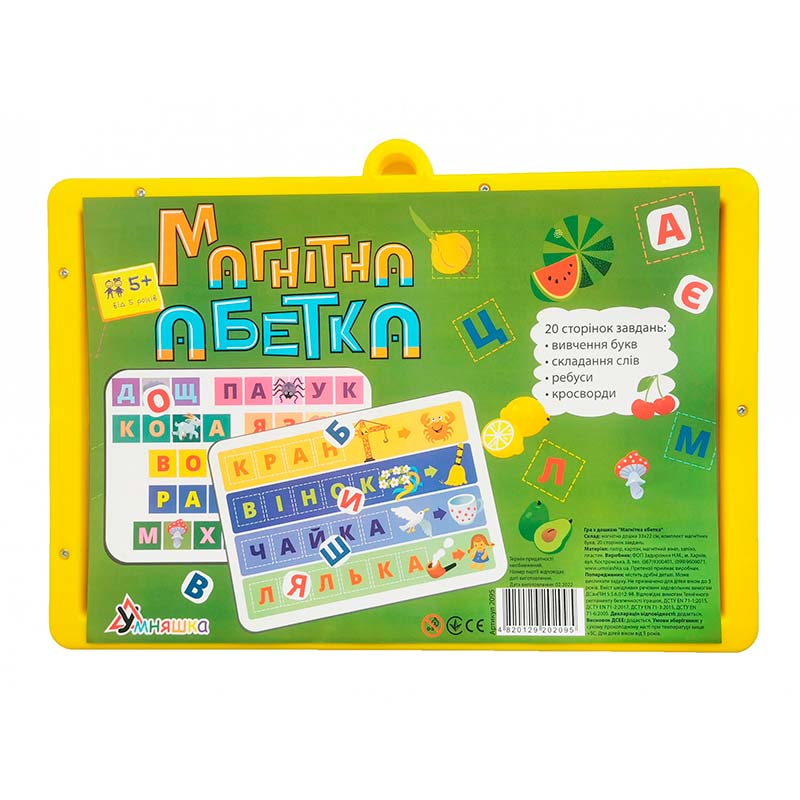 | Комплект поставки | магнітна дошка, комплект букв, 20 сторінок з завда |