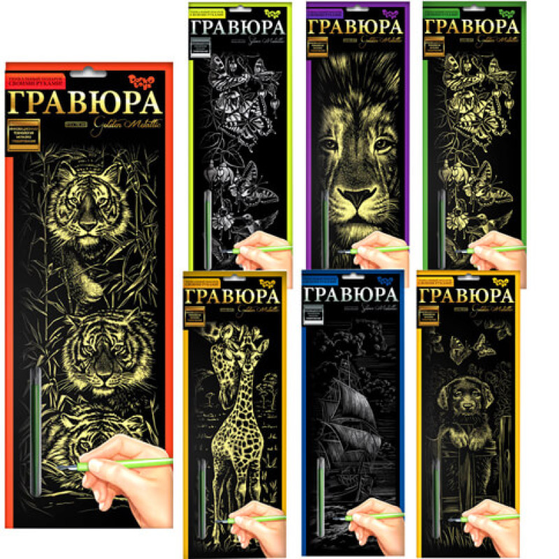 Набір для творчості "Гравюра-панорама" - це захопливе і розвивальне заняття, яке сприяє розвитку творчого смаку, прищеплює працьовитість і почуття прекрасного в дитини. Принцип малювання за спеціальним планшетом досить простий - на алюмінієву пластину вже нанесено малюнок і зверху покрито спеціальною фарбою. Для того, щоб вийшла повноцінна картина-гравюра, необхідно лінія в лінію, штрих в штрих повторювати початкове зображення.