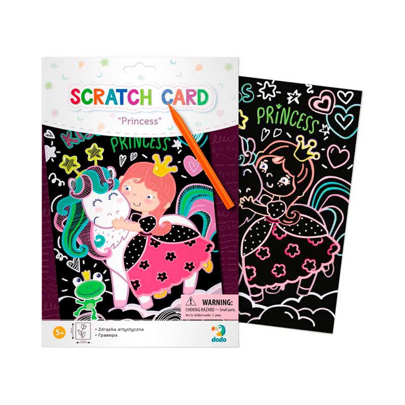 За допомогою штихеля дитина дряпає по малюнку, знімаючи захисний чорний шар - і поступово з'являється барвистий малюнок.