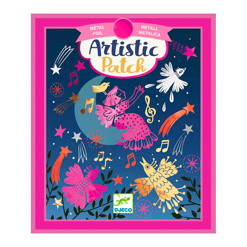 Художній комплект патчі металізовані DJECO Мелодії DJ09460 кишенькового формату, що дає змогу прикрашати картки з ілюстрованим тлом за допомогою різноманітних картинок і металізованих патчів. Відомо, що ці патчі можна також використовувати для прикрашання блокнотів.