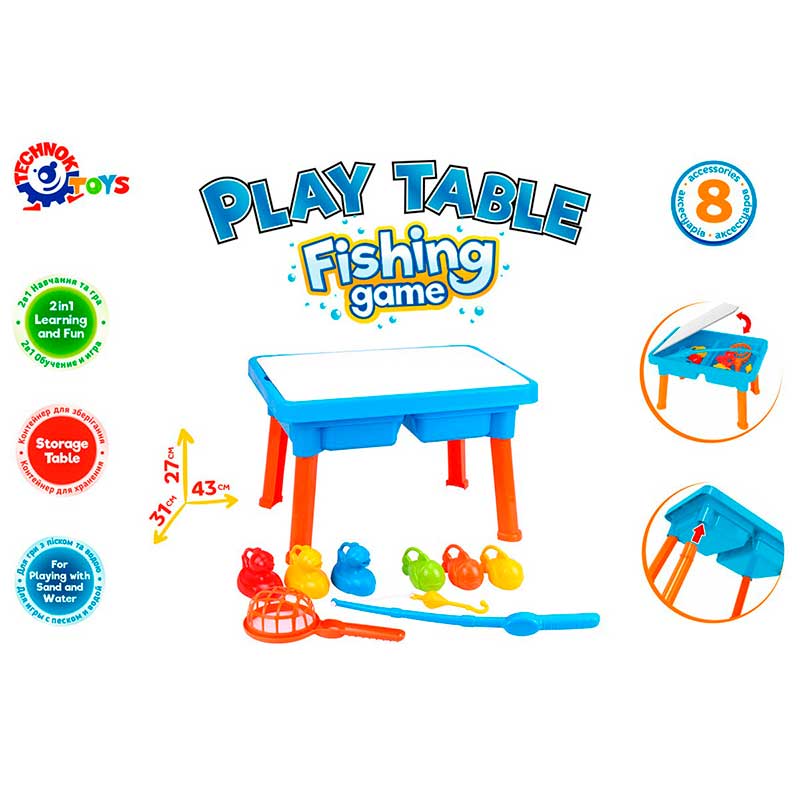 Ловись рибка велика і маленька з "Набором для риболовлі" від ТехноК. Тепер гратися улюбленою іграшкою ще цікавіше. Тому що є зручний та фінкціональний столик з великими нішами. Це місце для гри й творчості, риболовлі, та водночас місткий контейнер для зберігання олівців, фломастерів, гумок та іншого дріб'язку. Столик займе почесне місце в кожній дитячій ігровій кімнаті.