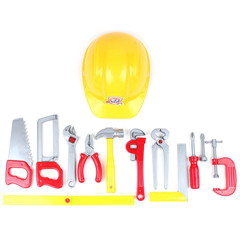 Іграшка Набір інструментів - у наборі 12 інструментів: струбцина, розвідний ключ, метр, кліщі, плоскогубці, пила по металу і пила по дереву, куточок, молоток, розвідний ключ, викрутка з двома насадками - фігурною і плоскою.