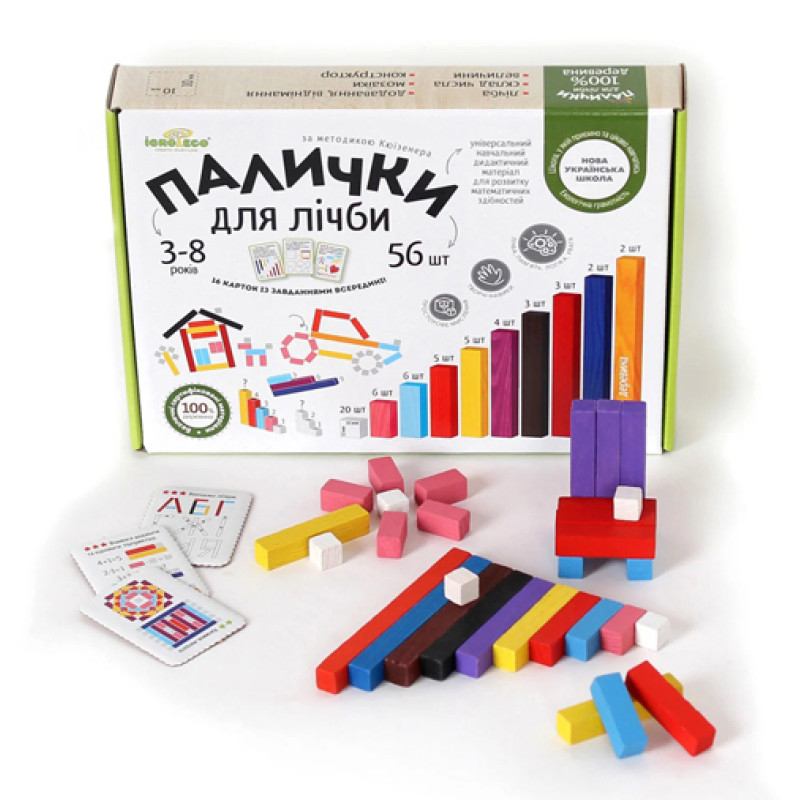 | Комплект поставки | палочки 56 шт, карточки с заданиями 16 шт. |
