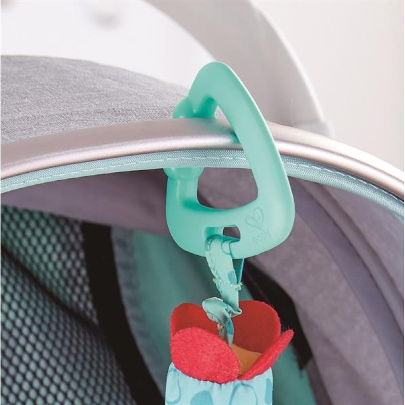 Брязкальце на коляску Hape Джміль виконана у вигляді барвистої підвіски з текстильними фігурками джмеля, квіточки і пластиковим кільцем. Довжина іграшки: 38 см. Кріпиться до козирка коляски пластиковим зажимом. Підійде малюкам з народження.Брязкальце-підвіска Hape Джміль (E0022) відповідає міжнародним стандартам якості EN 71 і ASTM F963.
