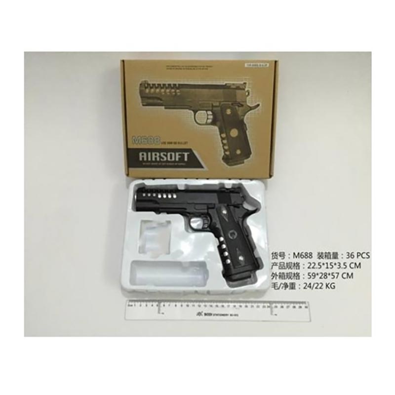 Стильна та надійна іграшка, яка поєднує реалістичний зовнішній вигляд металевого корпусу з безпечним ігровим механізмом на кульках. Ідеальна для активних рольових ігор, тренування точності та динамічних змагань у компанії друзів.
