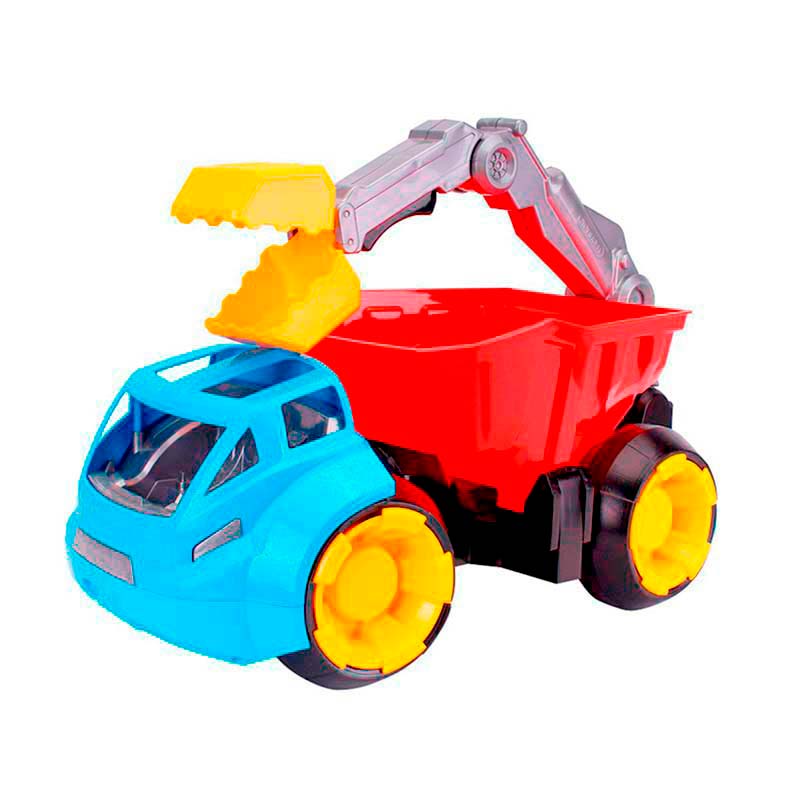 Потужні колеса, виготовлені методом видуву забезпечують самоскиду тихий хід та високу прохідність. На кабіні розміщена зручна ручка для перенесення. Відкритий та ергономічний салон запрошує водія до роботи. Іграшка має цікавий футуристичний дизайн та яскраві кольори.