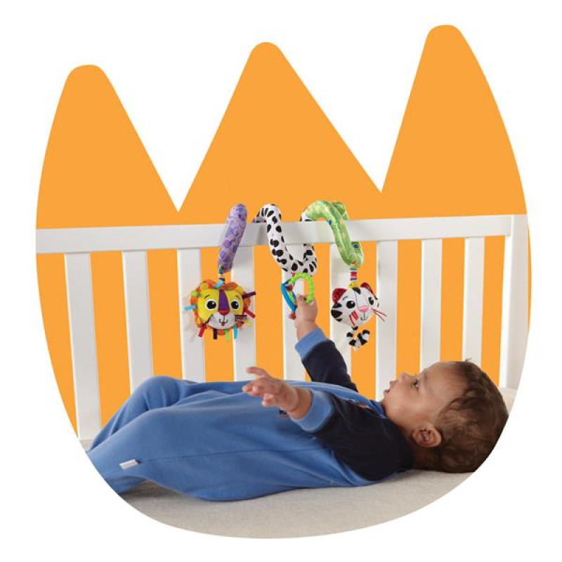 Весела підвіска у вигляді спіралі зі звірятами не залишить байдужим жодного малюка. До спіралі прикріплені два прорізувачі та дві м'які іграшки. Спіральну підвіску легко причепити на коляску, автокрісло, ліжечко або манеж.Іграшка сприяє розвитку тактильних відчуттів, хапального рефлексу та колірного сприйняття. Просто оберніть м'яку спіраль навколо бильця ліжечка чи ручки коляски, щоб зацікавити дитину. Малюк може дотягнутися до еластичної спіралі та потягнути її - яскраві кольори та візерунки привернуть увагу. Доброзичливі тварини, що усміхаються у відповідь, сприятимуть утриманню фокусу.Кожна іграшкова тваринка дзвенить, коли її тягнуть, і пищить, коли її стискають, що ідеально підходить для заохочення сенсорних відкриттів. Є два кільця-прорізувача зубів. Іграшка-спіраль Lamaze Звірята підходить для малюків від народження.