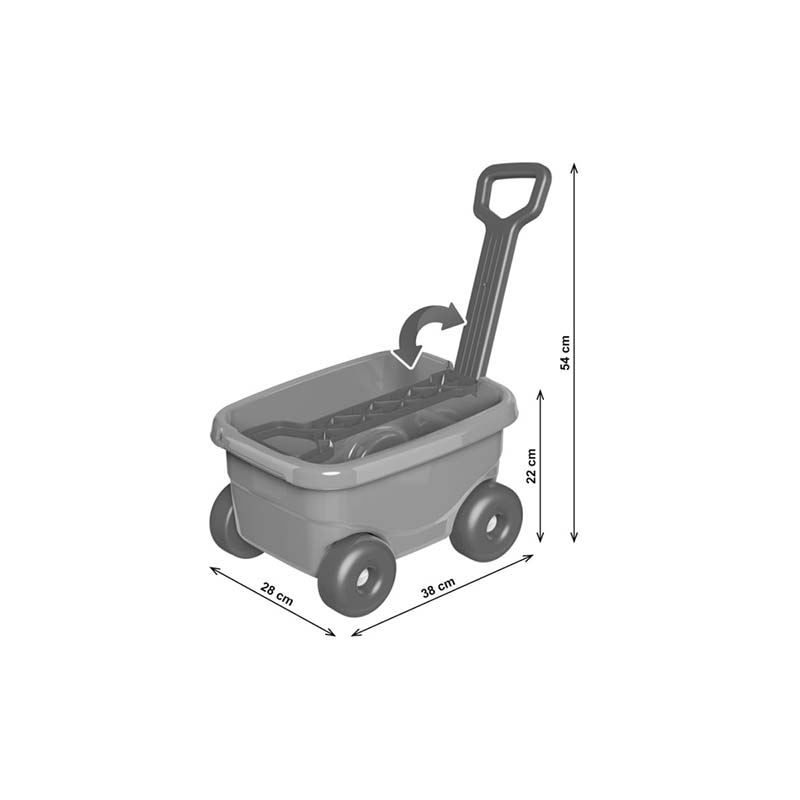 - Велика місткість – 9 літрів! Малюк зможе перевозити свої іграшки, кубики, пісок або осіннє листя. Ідеально для сюжетних ігор та прибирання.