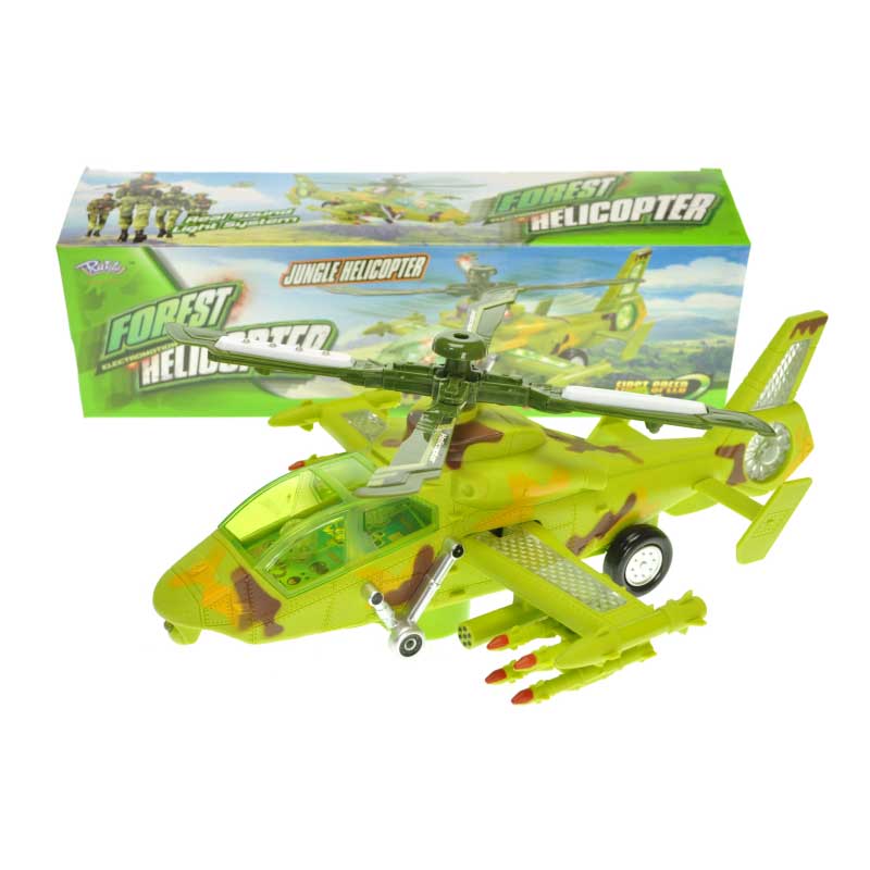 Іграшка вертоліт на батарейках зі звуком і світлом зелений 77742