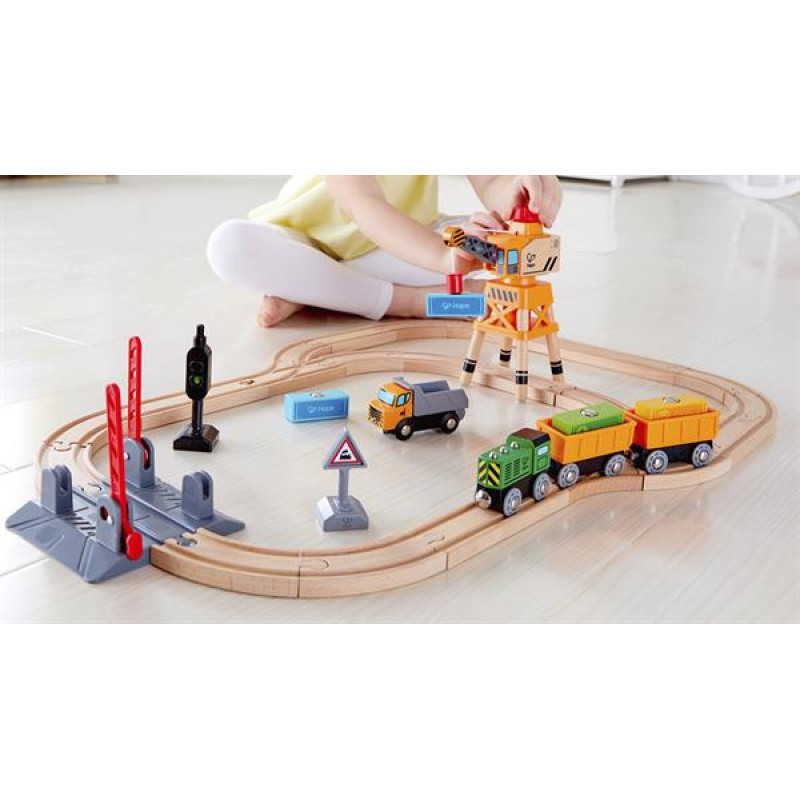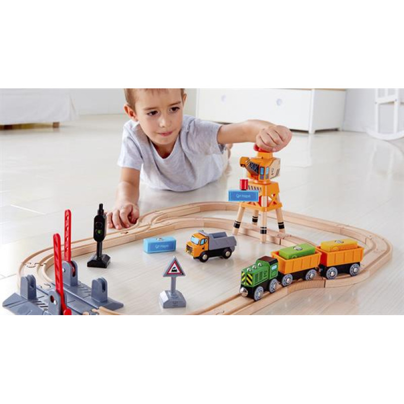 Іграшкова залізниця Hape дерев'яна з краном 34 ел. (E3732)
