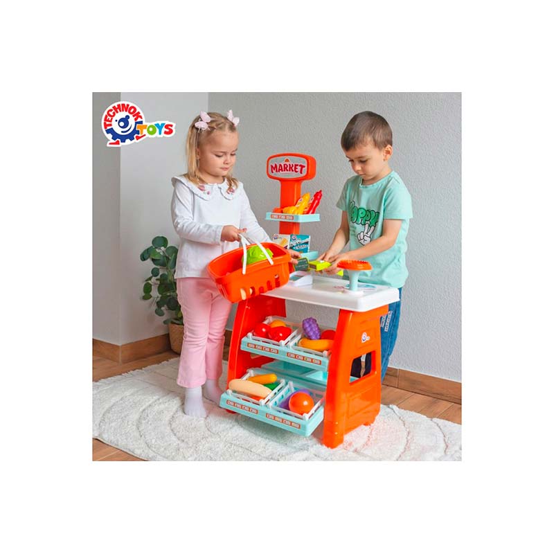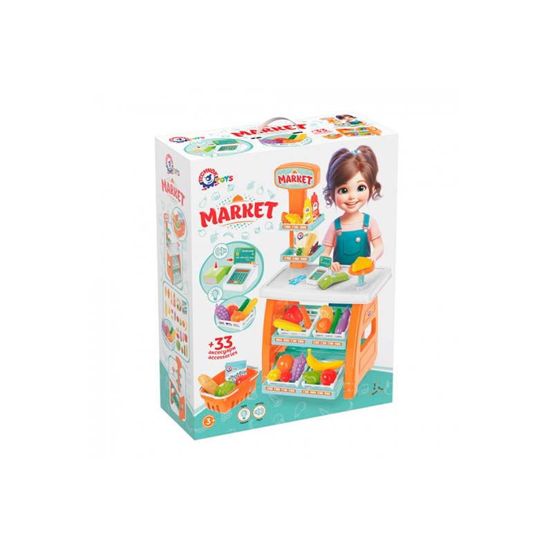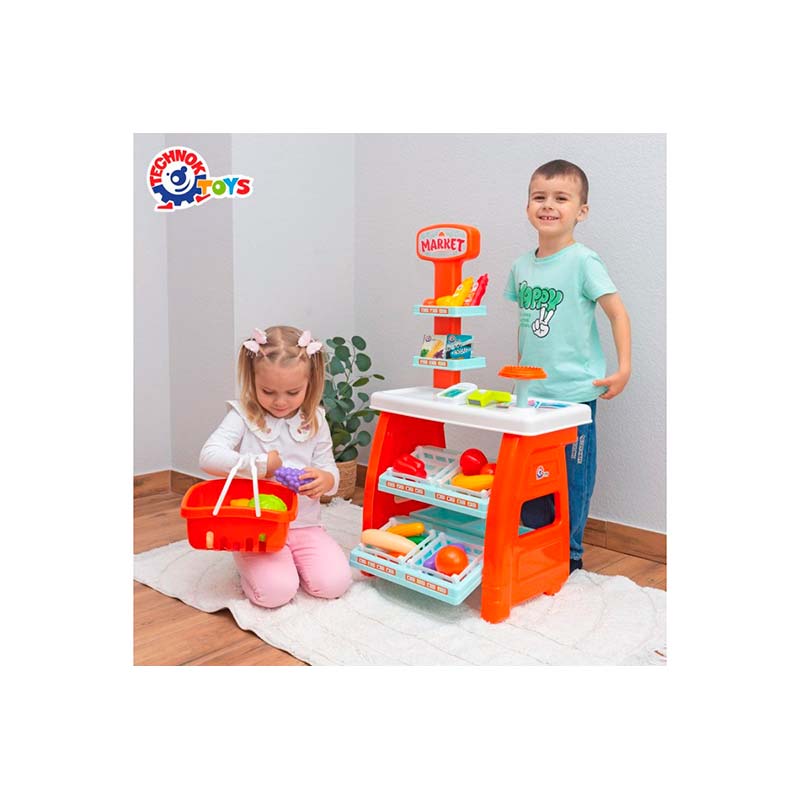 Іграшка допоможе дітям знайомитися з різними продуктами, створювати цікаві сценарії та навіть вчитися розподіляти товари. Завдяки ретельно продуманим деталям і яскравому дизайну, "Маркет ТехноК" стане улюбленим місцем для гри, де малюк може обирати, купувати або продавати — все, як у справжньому магазині!
