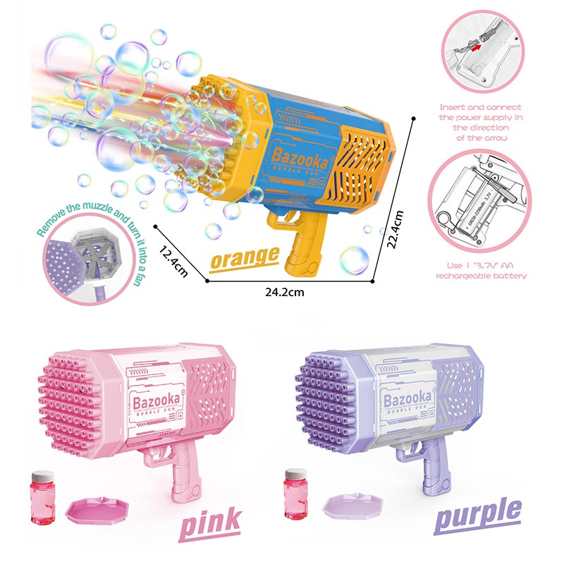 Чарівний атракціон для малих дослідників — легкий у використанні пістолет, який перетворює кожен день на свято. Він миттєво наповнює простір яскравими, переливчастими бульбашками, що дарують сміх і радість дітям та дорослим.