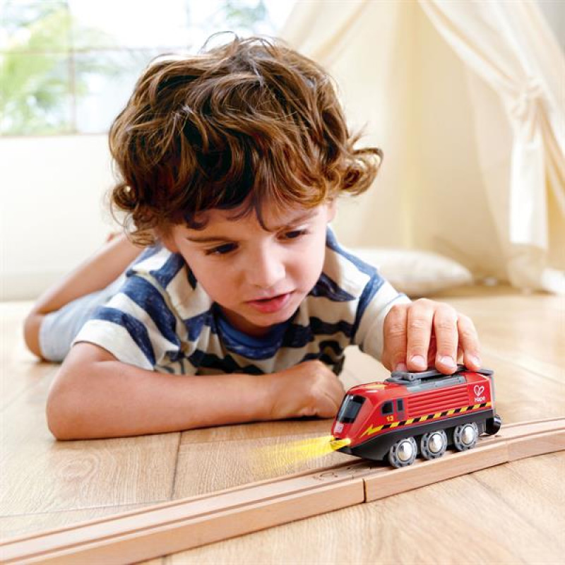 Іграшковий поїзд Hape до залізниці (E3874) сподобається дітям віком від 3 років. Зарядіть його через порт USB або поверніть ручку, щоб привести поїзд у дію, і спостерігайте, як він мчить уперед!ОсобливостіГра з поїздами допомагає дітям розвивати когнітивні навички, а також розуміння причин і наслідків.Використовуйте USB-кабель, щоб зарядити поїзд, або поверніть рукоятку, щоб отримати кінетичну енергію, увімкнути світло і змусити поїзд котитися.Управління поїздом та обертання рукоятки допомагає покращити спритність дитини та зорово-моторну координацію.Цей поїзд можна використовувати для самостійної гри чи з більшістю дерев'яних залізничних наборів.Вік: від 3 років.Розміри: 11,5 х 5 х 3,8 см.Вага: 0,17 кг.
