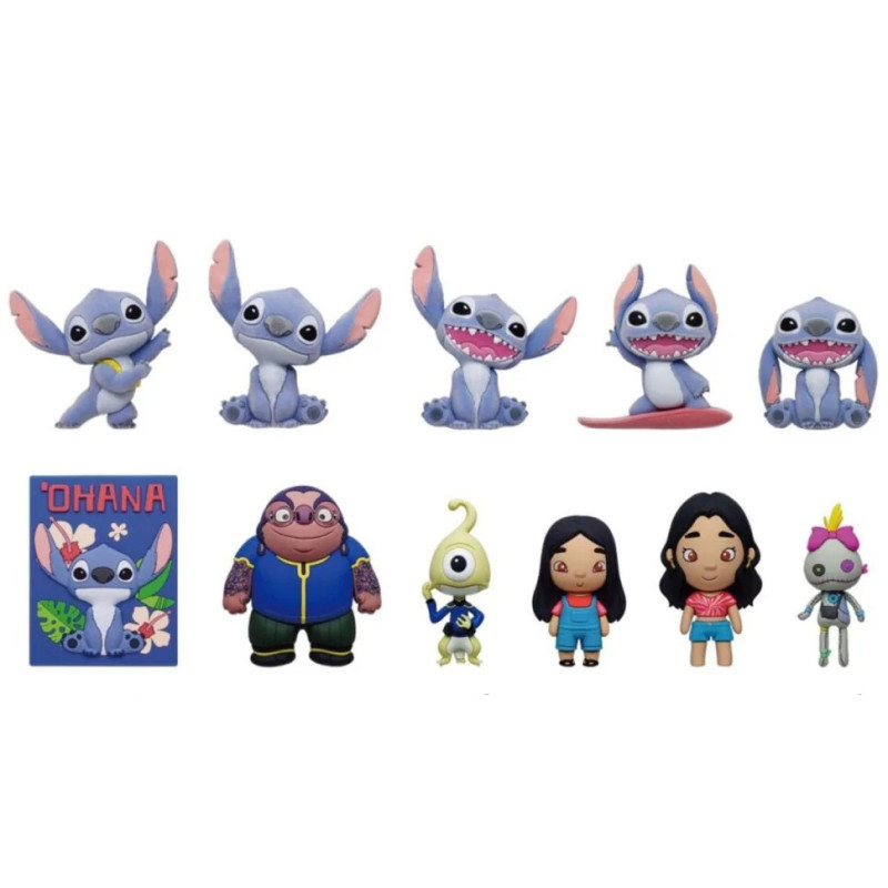 В асортименті 11 головних героїв, з яких 2 рідкісних: 5 флокованих фігурок Стіча в динамічних позах, фігурка-постер «Охана», Джамба, Пліклі, Ліло, Нані (рідкісна) і Чуча (рідкісна).
