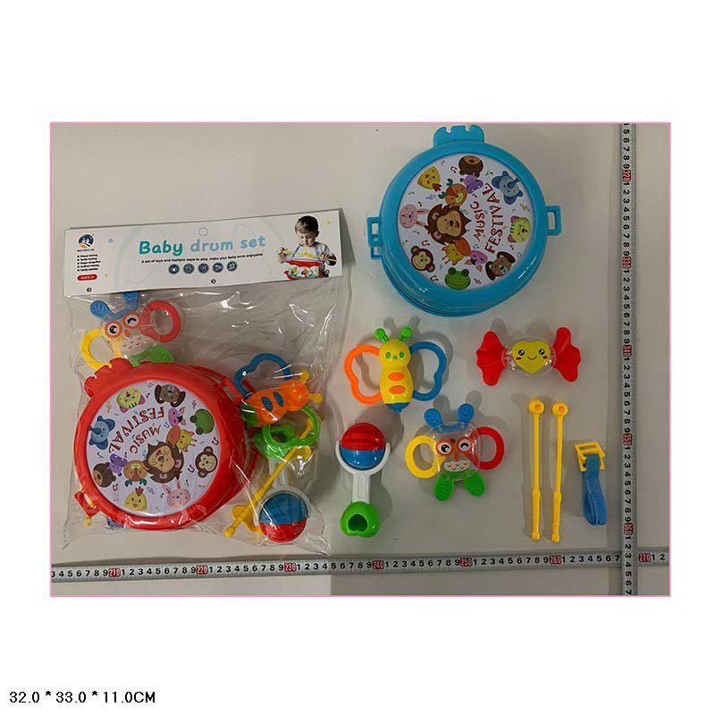 Яскравий і веселий набір для музичних ігор, що поєднує ритмічний барабан і декілька брязкалець. Створений, щоб пробудити інтерес до музики, розвивати слух, координацію та дрібну моторику.