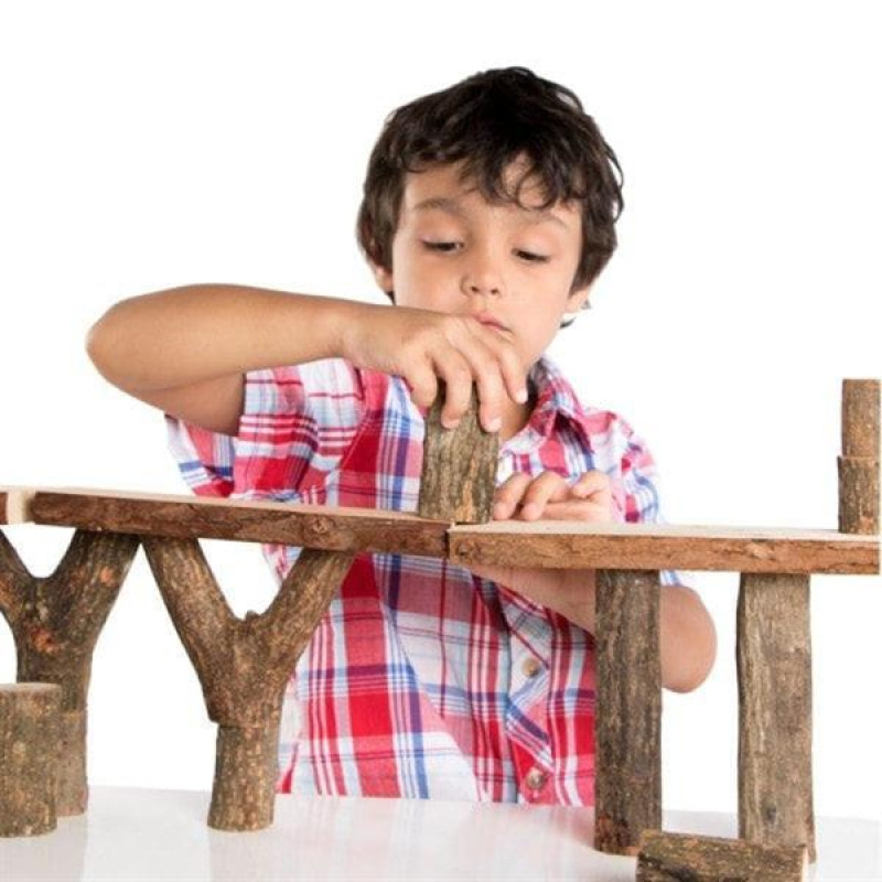 У наборі зібрані 36 елементів: необроблені палиці, гілки, зрізи з дерева з корою для творчих занять. Підходить для освітньої методики STEM. Розвиток: сенсорні навички, креативність. Розміри приблизно: 2,5-7,5 х 17,8 см.