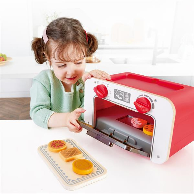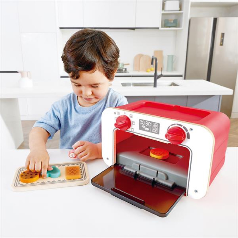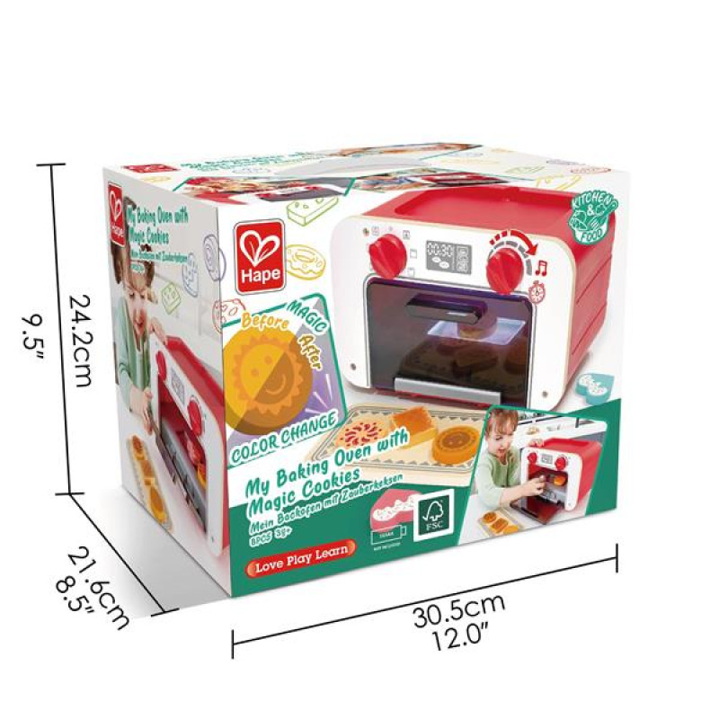 Розкрийте кулінарну творчість дитини за допомогою цього іграшкового набору для випікання печива!Маля завжди спостерігає за мамою чи татом біля плити, духовки чи мікрохвильової печі? Він може наслідувати батьків з ігровим набором Hape Духовка з печивом.Дітям сподобається ця реалістична іграшка, особливо її світлова та звукова функції - вони повідомляють, коли чарівне печиво готове! Шість печив із набору змінюють колір, поки перебувають у духовці, ніби справжні.Цей барвистий ігровий набір допомагає дітям розвивати уяву та соціальні навички. Їм сподобається процес випічки, про який вони дізнаються більше.Живлення від 3 батарейок ААА (у комплект не входять).Набір включає: одну духовку, один двосторонній лист і шість печив.Світло всередині духовки робить печиво темнішим. Через деякий час колір повернеться до світлішого.Світло автоматично вимикається, коли таймер «дзвенить», і вмикається, коли дверцята відкриваються і закриваються.Ігровий набір Hape Духовка з печивом підходить для дітей віком від 3 років і старше.